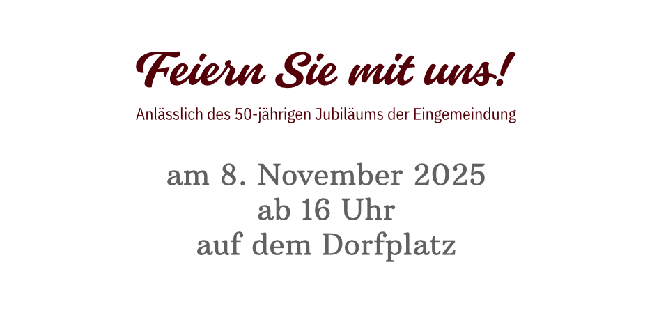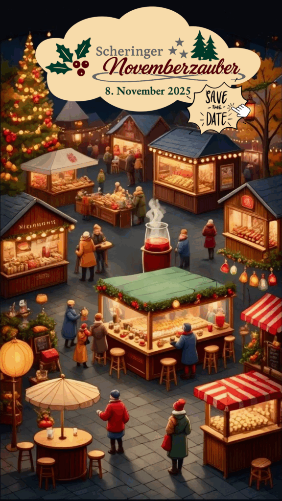 Wir laden Sie herzlich ein, am 8. November einen unvergesslichen Abend in Scheringen zu verbringen. Anlässlich des 50-jährigen Jubiläums der Eingemeindung veranstalten wir den allerersten Scheringer Novemberzauber.